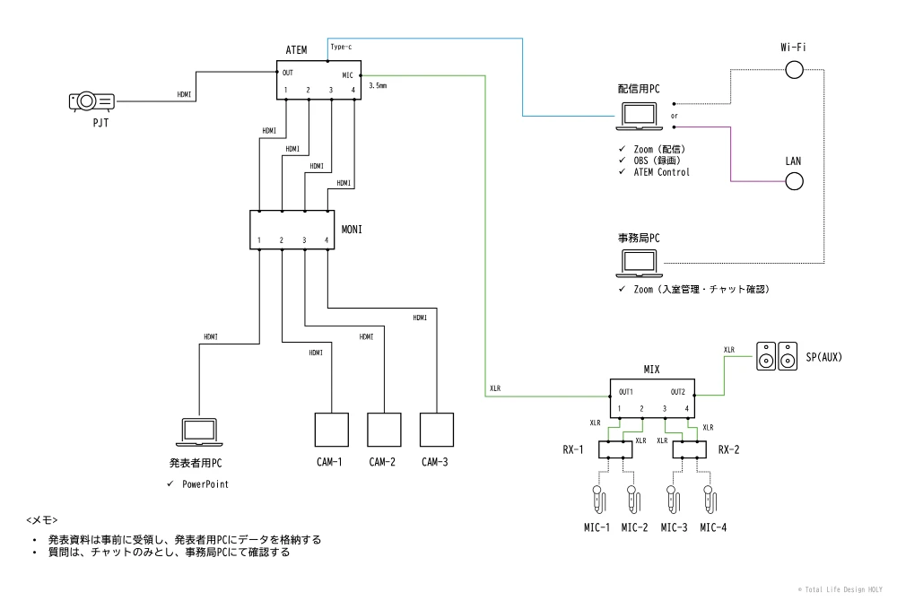 この構成図が本当に示しているのは、機材リストではありません。イベントを支配下に置き、あらゆる不確定要素を排除するという、現場の「思想」そのものです。図に添えられた、一見地味な2つのルールこそ、その配信ノウハウの核心と言えるでしょう。